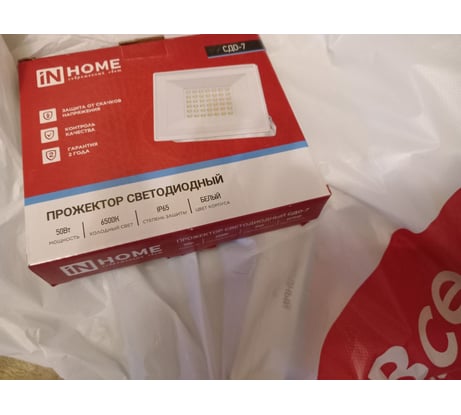 Отзывы о светодиодном прожекторе IN HOME СДО-7 50Вт 230В 6500К IP65 белый 4690612034706