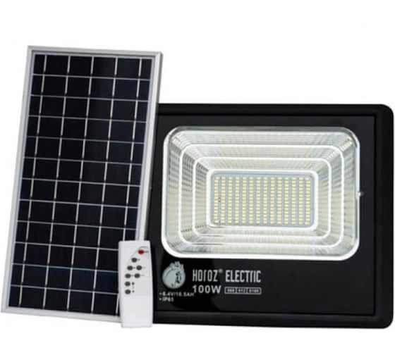 Светодиодный прожектор с модулем солнечной батареи HOROZ ELECTRIC 068-012-0100 100W черный 6400К 3.2V TIGER-100 HRZ33002949