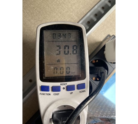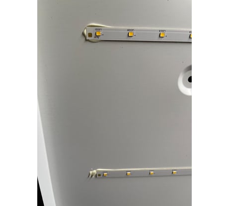 Текстолит с диодами приклеен по всей площади на термоклей к основанию, это явно лучше клепок. По 21 диоду на планке, итого 84 диода. Потребление из розетки на холодную 30,8 Ватт , что близко к заявленной мощности.