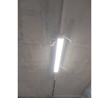 Взял для освещения гаража. Конструкция легкая, особой прочностью не отличается, но прочность здесь не очень важна, функцию выполняет и достаточно. Светильник рассчитан для накладного монтажа на потолок или стену и скрытую проводку, т. е кабель должен торчать из потолка или из стены, отверстий для ввода кабеля сбоку не предусмотрено. Я устанавливал на железобетонную плиту перекрытия, провод в кабель-каналах, поэтому пришлось сверлить отверстия в торцевых заглушках, чтобы завести провод. С одного торца это не сложно, а с другого находится драйвер и завести кабель типа ВВГнг практически невозможно. Свет яркий, режет глаза, рассеивание минимальное, так что для освещения рабочей зоны это не вариант.