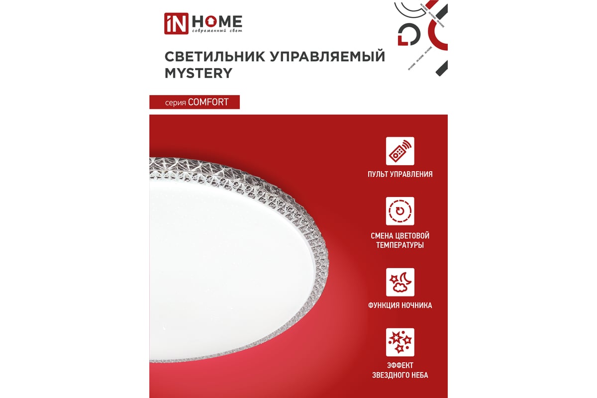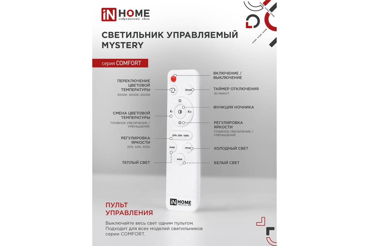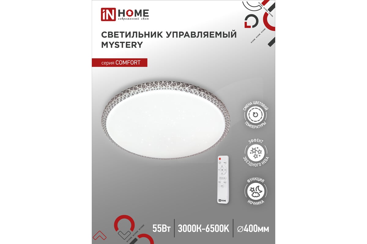 Светодиодный светильник IN HOME COMFORT MYSTERY 55Вт, 230В, 3000-6500K, 4400Лм, 400x70мм, с пультом ДУ 4690612034904