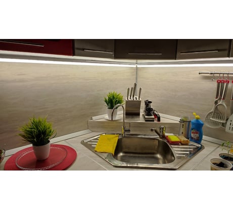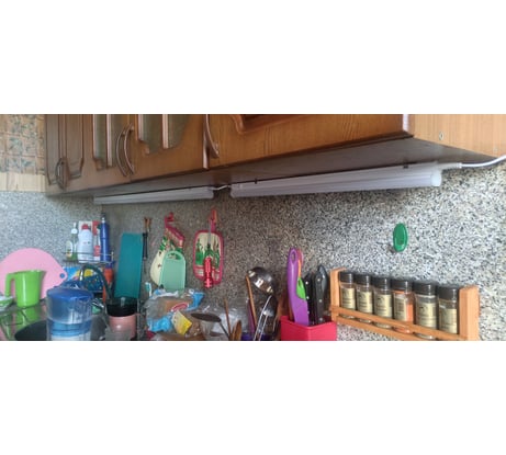 Брал 2 по 600мм, 4000 К на пробу, за 220 руб/шт приемлемое качество. Комплектность проверил в магазине, все было на месте, светят достойно, монтаж простой, долговечность за полгода в щадящем режиме проблем нет. Купил 2 по 1200, 4000 К, посмотрел упаковку - целая, проверять не стал. Дома проверил комплектность соответствует у обоих. Но при включении один не загорелся. Подключил второй, он загорелся, но секунды через 3-4 резкое кратковременное увеличение яркости. Выключил/включил увеличение яркости повторилось, оставил светить. Неработающий светильник решил вскрыть посмотреть причину брака. Вскрыл боковые заглушки, на ленте оторван провод на месте припоя. Одновременно с этим тухнет второй светильник, остался светить только один светодиод. Запах гари и подкопченый плафон в одном месте. По итогу сдавать не понес. Лента вытаскивается, провод на одном просто подпаял, на втором сгорела дорожка, пришлось подрезать место прогара, чтобы вытащить ленту, на ленте впаял перемычку, светодиоды целые, посмотрю сколько послужат. Копоть на плафоне до конца не оттерлась, на влюченном не критично.
