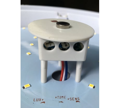 Датчик движения очень дешёвый, собран неаккуратно (фоторезистор стоял криво на обоих светильниках, пришлось открывать датчик и исправлять). Регулировку чувствительности убрали, хотя отверстие под переменник осталось. В описании указана степень защиты IP65, реально - IP40, вандалоустойчивости тоже нет. Использовать только при положительной температуре.