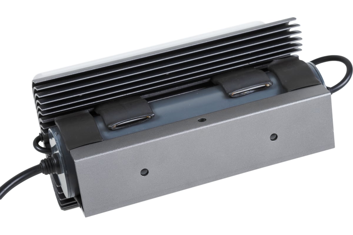 Массивный радиатор быстро отводит тепло, тем самым не допуская перегрев светодиодов.