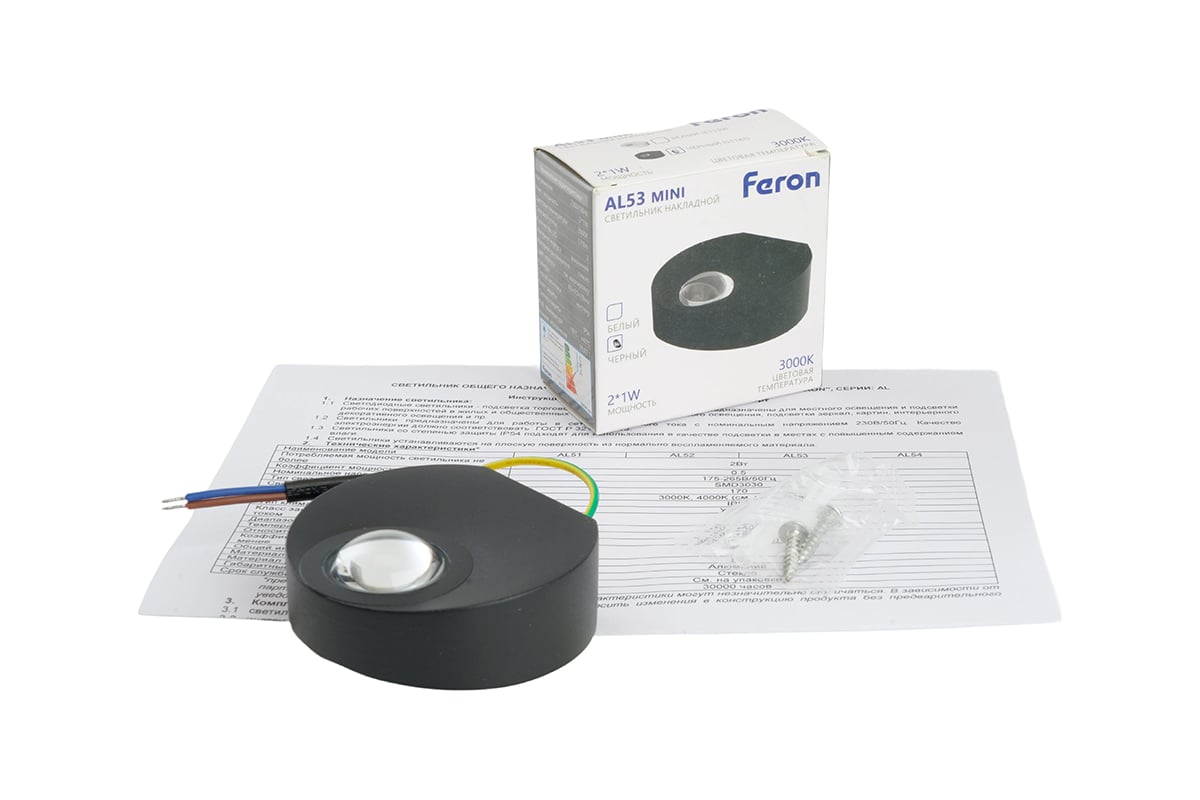 Светодиодный светильник стационарный FERON AL53 2х1W 4000K черный, 51141