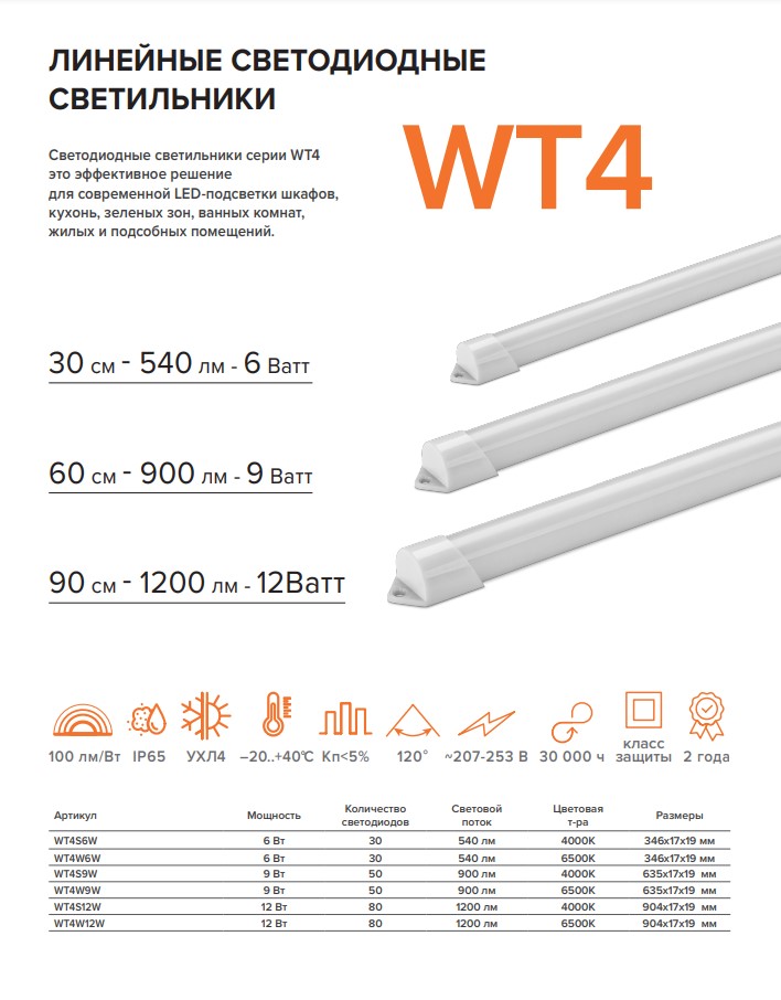 Расходные материалы для светодиодного светильника Wolta 12 Вт, 4000К, Дневной белый свет, IP65, УХЛ4 WT4S12W