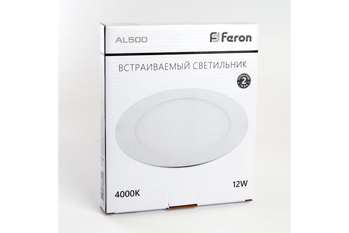Светодиодный встраиваемый светильник FERON AL500, 12W, 4000K, 960Lm, белый 28504