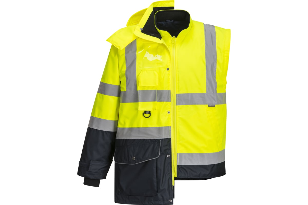 Светоотражающая контрастная куртка PORTWEST Traffic 7-в-1 S426, размер L S426YNRL – инновационная и функциональная куртка с семью вариантами использования. Подходит для любых погодных условий.