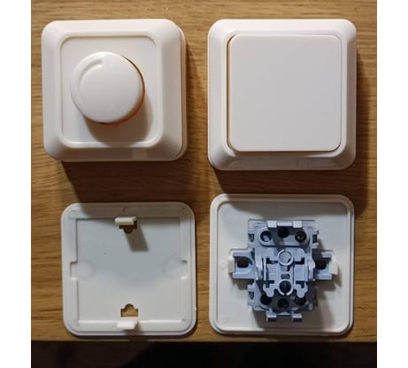 качество пластика и продуманность конструкции отвратительные. Задняя крышка на защелка не держалась изначально, усики-защелкислишком широко разведены и не держат, крутилка не держится, придется на клей сажать. Самое обидное, что выбора среди внешних диммеров совсем нет