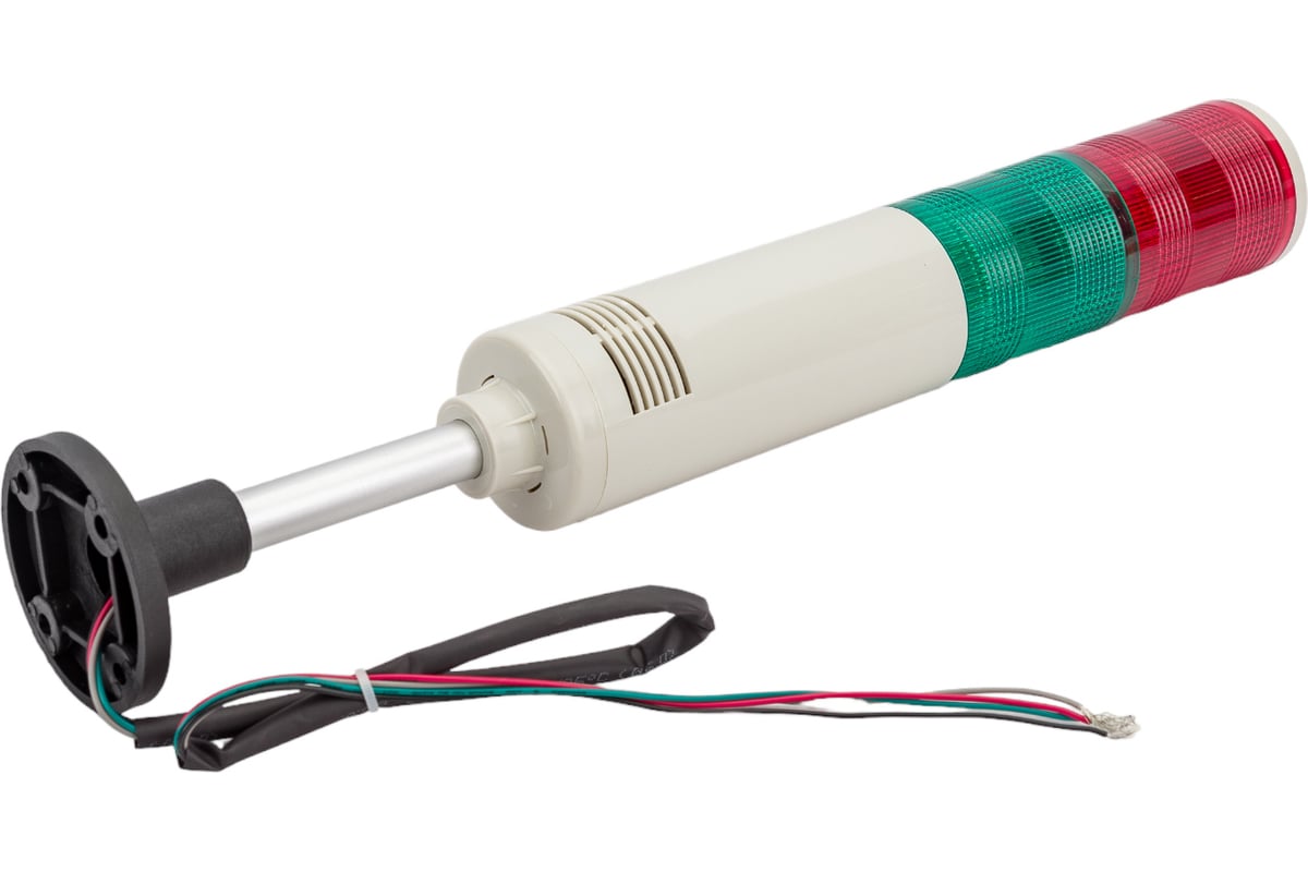 Светосигнальная колонна INNOCONT d=56мм, светодиод, стойка 70мм, основание d=70мм, постоянное свечение, зуммер, цвет: красный, зеленый, 220VAC, IP50, кабель 0,5м TL56B-220-RG позволяет контролировать технологические процессы на производствах с помощью световой и звуковой индикации.