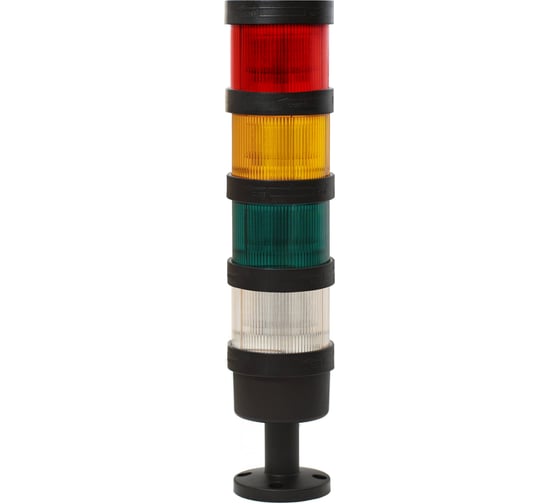 Светосигнальная колонна d=70мм, светодиод, стойка 55мм, основание d=70мм, постоянное свечение, без зуммера, цвет: красный, желтый, зеленый, белый, 24VDC, IP65, кабель 0,5м. Это устройство, позволяющее контролировать технологические процессы на производствах с помощью световой и звуковой индикации. Идеально подходят для автоматизации производства и многих других областей применения благодаря экономичности (энергосбережению) и отсутствием необходимости в техническом обслуживании.