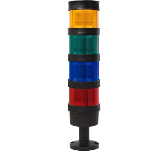 Светосигнальная колонна d=70мм, светодиод, стойка 55мм, основание d=70мм, постоянное свечение, без зуммера, цвет: желтый, зеленый, синий, красный, 24VDC, IP65, кабель 0,5м. Это устройство, позволяющее контролировать технологические процессы на производствах с помощью световой и звуковой индикации. Идеально подходят для автоматизации производства и многих других областей применения благодаря экономичности (энергосбережению) и отсутствием необходимости в техническом обслуживании.