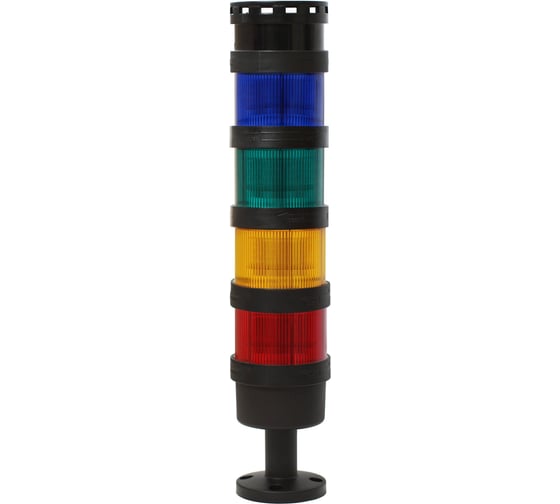 Светосигнальная колонна, d=70, высота 200мм, стойка мм, постоянное свечение, цвета: синий, зеленый, желтый, красный, 24 DC, IP65. TL70B-024-BGYR-55 - это устройство, позволяющее контролировать технологические процессы на производствах с помощью световой и звуковой индикации. Идеально подходят для автоматизации производства и многих других областей применения благодаря экономичности (энергосбережению) и отсутствием необходимости в техническом обслуживании.