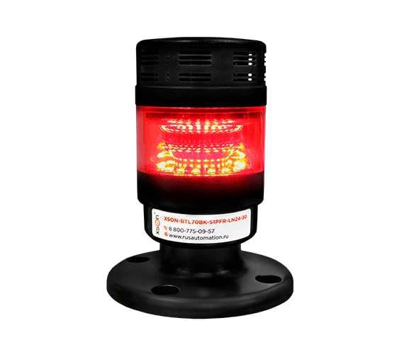Светосигнальная колонна XSON d = 70 мм, стойка 30 мм, постоянный звук, цвет: красный, 12…24 В DC, IP53 XSON-BTL70BK-S1AFR-LN24-30