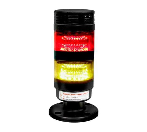 Светосигнальная колонна XSON d = 70 мм, стойка 30 мм, постоянный звук, цвета: красный, желтый, 24 В DC, IP53 XSON-BTL70BK-S2AFRY-LN24-30