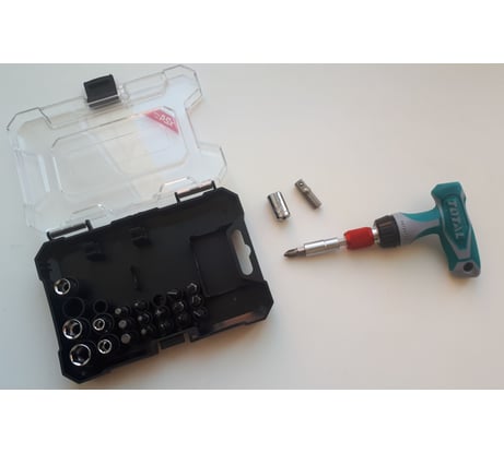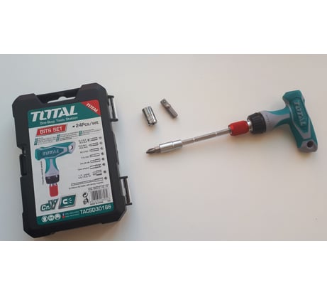 Отзывы о Т-образной реверсивной отвертке с насадками 24 шт. TOTAL TACSD30186