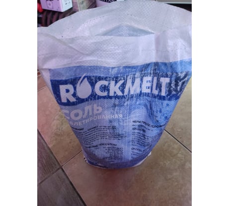 Таблетированная соль Rockmelt 25 кг 4620769394156 представляет собой спрессованную поваренную соль.