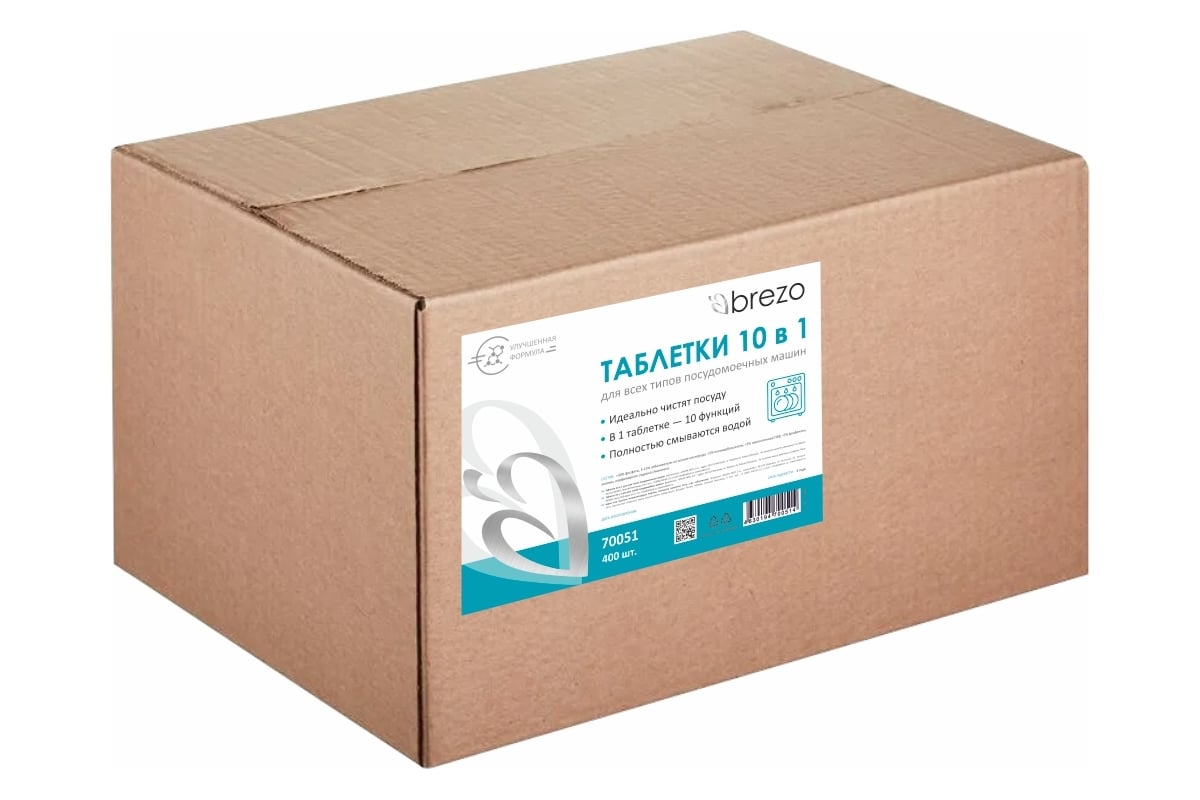 Таблетки для посудомоечной машины BREZO ALL IN 1 400 шт. 70051 (улучшенная формула) удаляют любые виды загрязнений со стеклянной посуды, металлических столовых приборов, пластиковых контейнеров даже при низкой температуре воды.