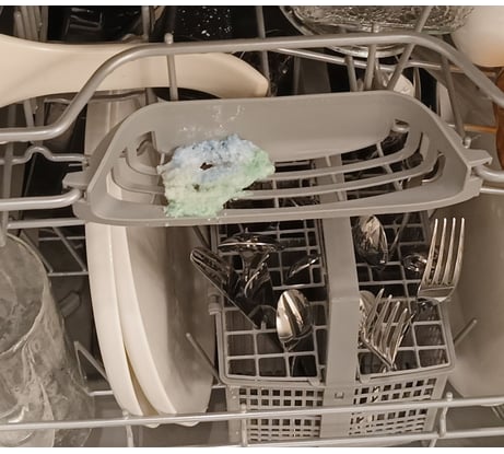 - Не класть таблетку на дно посудомоечной машины или непосредственно в корзину со столовыми приборами.