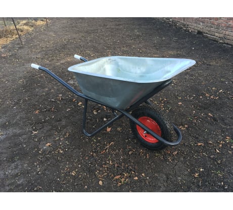 Одноколесная тачка Gigant с оцинкованным кузовом 110л, 200 кг ZAW-01 имеет пневматическое колесо и обеспечивают хорошую проходимость, снижает риск опрокидывания. Предусмотрены резиновые накладки на ручки тачки.