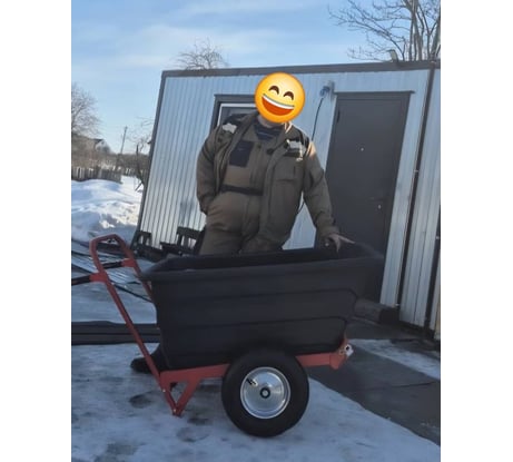 Покупал для вывоза снега с территории,корыто-самосвал отлично работает, сама рама крепкая, корыто большое. Снизил бал-могли бы схему положить, некоторые отверстия несоосны, пришлось рассвеливать. На врятли потянет землю, или песок, а так апилки, листва, снег самое то. Между калесами расстояние 85см,поэтому нужна широкая калитка чтоб проехать.