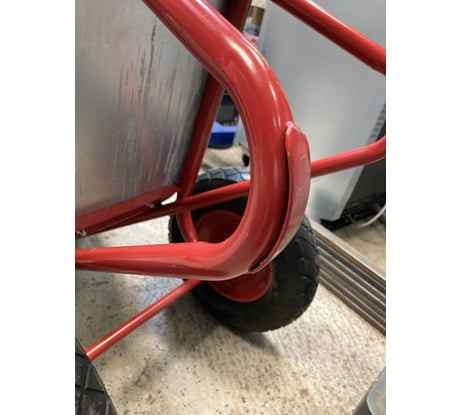 Отличный помощник на даче. Толщина металла хорошая, не прогибается. Удобные ручки, хорошие колеса.