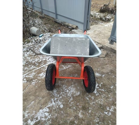 Отличная строительная тачка с двумя колесами! Большая грузоподъемность, маневренность и надежные колеса делают работу легче. Идеальна для стройки и дачи. Нам понравилась тачка.