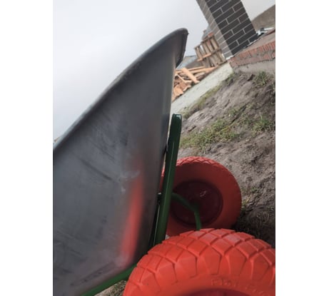 Большой объём, удобная в эксплуатации, прочная рама.. Колеса полиуретановые не надувные, ход легкий.. Брали на стройку. Советуем однозначно..