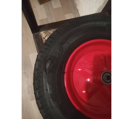 Колесо бракованое, увидел когда собирал при получении в магазине не увидел. Покрышка рваная.