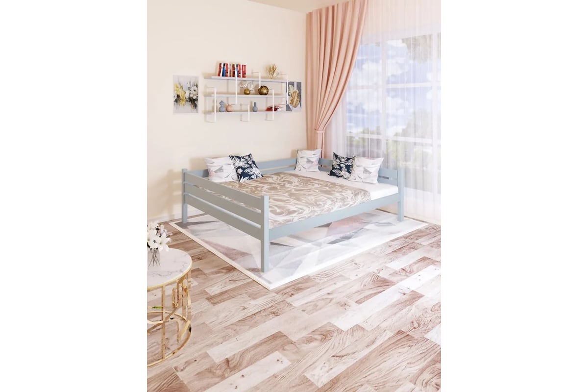 Тахта двуспальная Solarius из массива сосны с ортопедическим основанием, 160x190 см, габариты 170x200 см, цвет голубой tahta160-190gol-orto