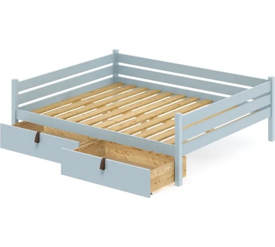 Тахта двуспальная Solarius из массива сосны, с реечным основанием, 140x160 см, габариты 150x170 см, с двумя выкатными ящиками, цвет голубой tahta140-160gol-2yash