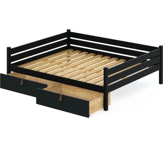 Тахта двуспальная Solarius из массива сосны, с реечным основанием, 160x170 см, габариты 170x180 см, с двумя выкатными ящиками, цвет антрацит tahta160-170ser-2yash