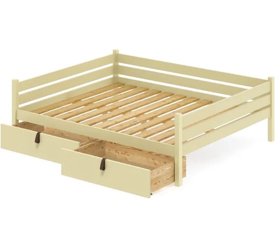 Тахта двуспальная Solarius из массива сосны, с реечным основанием, 160x170 см, габариты 170x180 см, с двумя выкатными ящиками, цвет ванили tahta160-170van-2yash
