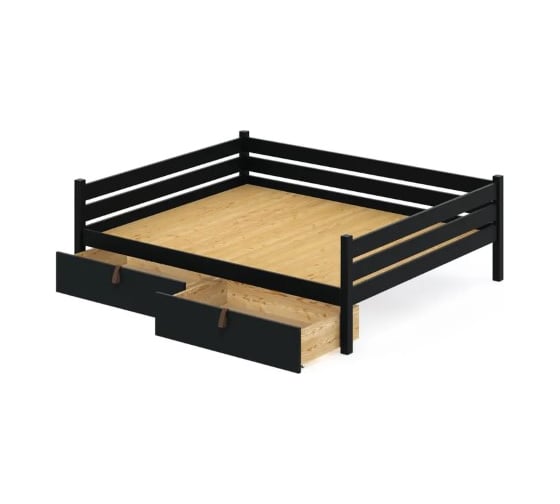 Тахта двуспальная Solarius из массива сосны со сплошным основанием, 140x190 см, габариты 150x200 см, с двумя выкатными ящиками, цвет антрацит tahta140-190ser-full-2yash
