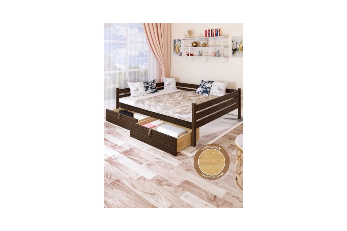 Тахта двуспальная Solarius из массива сосны со сплошным основанием, 180x190 см, габариты 190x200 см, с двумя выкатными ящиками, цвет венге tahta180-190ven-full-2yash
