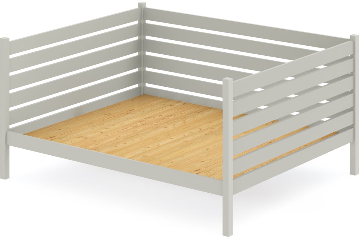 Тахта двуспальная Solarius из массива сосны со сплошным основанием и высокими бортиками, 120x160 см (габариты 130x170), с двумя выкатными ящиками, цвет платины tahta-spin120-160plat-full-2yash