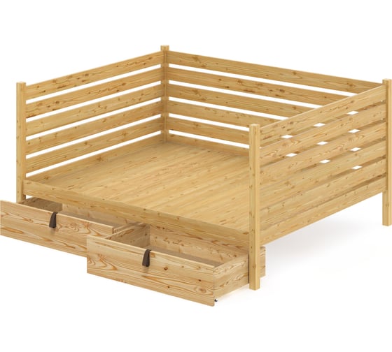 Тахта двуспальная Solarius из массива сосны, со сплошным основанием и высокими бортиками, 140x190 см, габариты 150x200 см, с двумя выкатными ящиками, без шлифовки и покраски tahta-spin140-190net-full-2yash