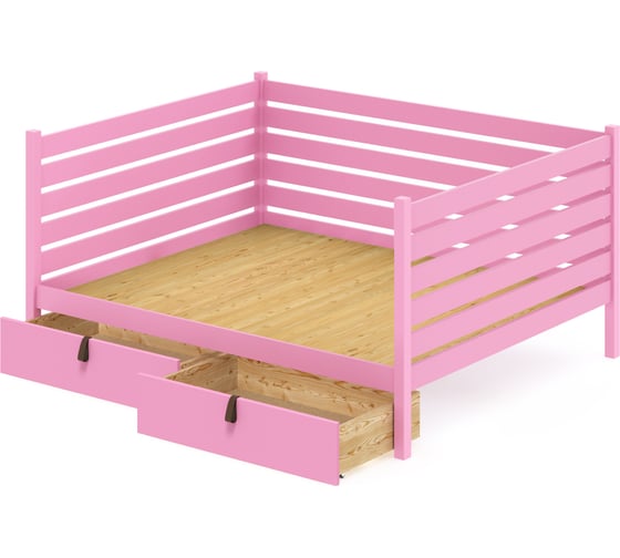 Тахта двуспальная Solarius из массива сосны со сплошным основанием и высокими бортиками, 160x170 см (габариты 170x180), с двумя выкатными ящиками, цвет розовый tahta-spin160-170roz-full-2yash