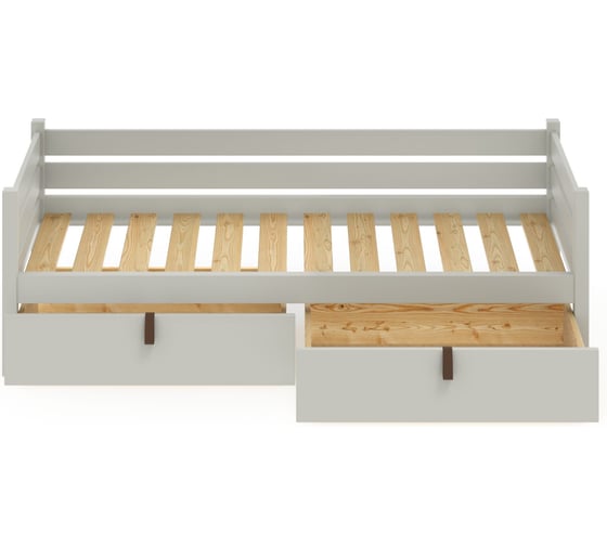 Тахта односпальная Solarius из массива сосны с реечным основанием, 190x100 см (габариты 200x110), с двумя выкатными ящиками, цвет платины tahta100-190plat-2yash