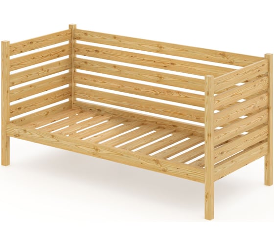 Тахта односпальная Solarius из массива сосны с реечным основанием и высокими бортиками, 100x160 см (габариты 110x170), без шлифовки и покраски tahta-spin100-160net