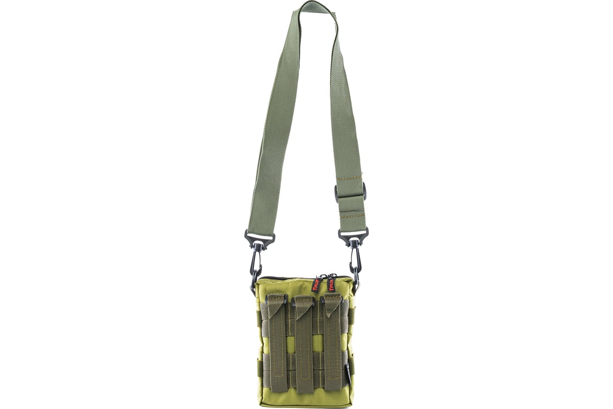 Для дополнительного оснащения различными аксессуарами предусмотрены резинки-держатели в торцевых частях изделия (по две с каждой стороны) и четыре MOLLE стропы в его лицевой части. Есть съемный плечевой ремень и внутренний карман из однослойной сетки.