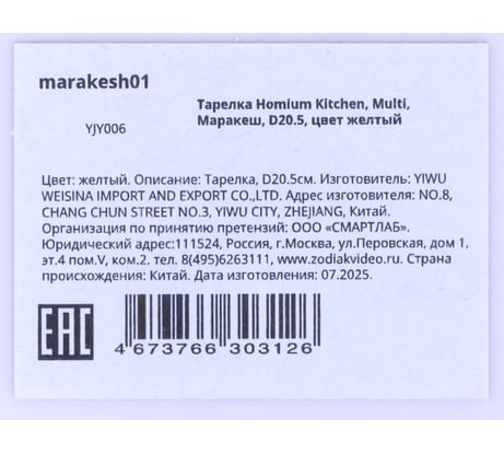 Отзывы о тарелке Homium Kitchen, Multi, Маракеш, диаметр 20.5 см, желтый marakesh01