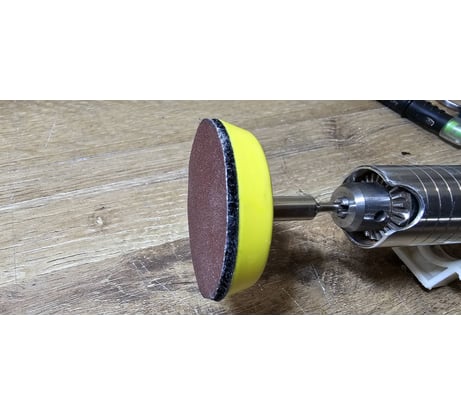 Брал для шлифовки внутри деревянных изделий на токарном станке. Чтобы туда забраться - нужен небольшой диаметр. Эта тарелка для этого как раз подходит. Диска вырезал из 125. получается по 5 штук. Липучка держит нормально