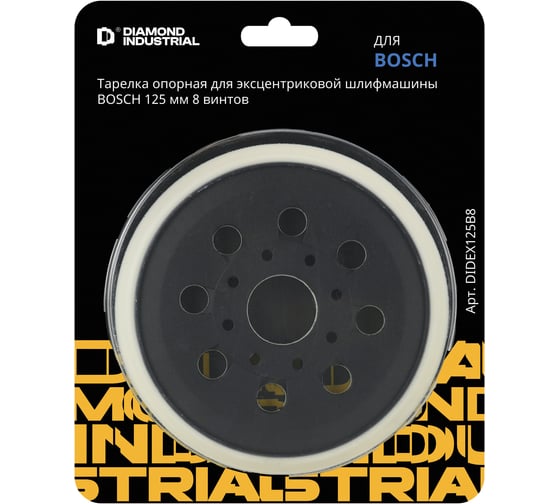 Тарелка опорная для эксцентриковой шлифмашины BOSCH 125 мм 8 винтов DIDEX125B8 Diamond Industrial подходит для моделей эксцентриковых шлифмашин Bosch GEX 125-1 и других моделей с аналогичными установочными параметрами.