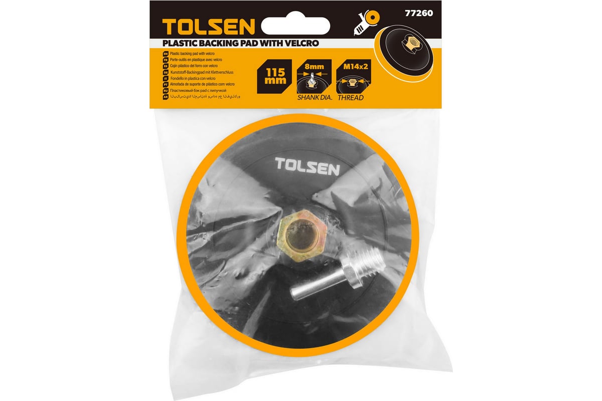 Тарелка опорная для УШМ/дрели TOLSEN 115 мм, с липучкой, M14 + хвостовик 77260
