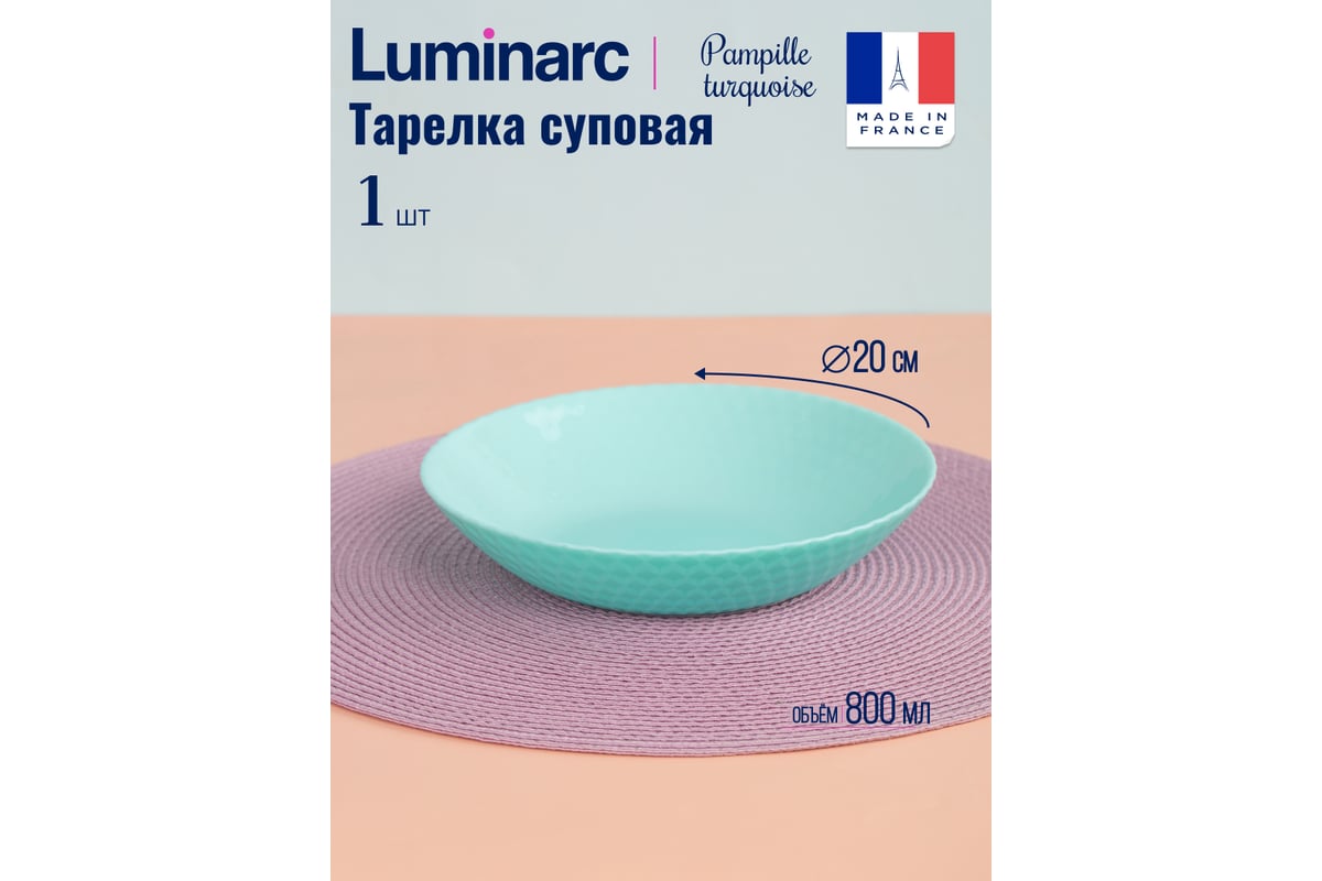 Суповая тарелка LUMINARC PAMPILLE TURQUOISE 20 см Q4650