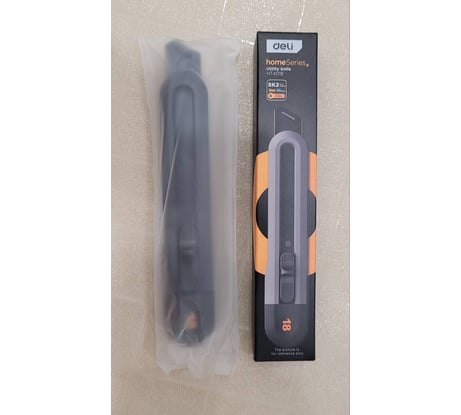 Технический строительный нож "Home Series Black" Deli HT4018 (сегментированное черное лезвие 18мм, эксклюзивный дизайн, корпус из высококачественного софттач пластика) применяется для реза бумаги, картона, линолеума и других материалов. Лезвие выполнено из качественной стали SK2, благодаря чему отличается исключительной надежностью и остротой и легко меняется при необходимости. Корпус со специальным покрытием Soft Touch обеспечивает комфортную эксплуатацию, стойкость к атмосферным явлениям и образованию сколов и трещин. Эксклюзивный дизайн - изящный, но одновременно строгий и современный - уделяет внимание каждой детали. Нож упакован в стильную картонную коробку и будет отличным подарком для любителей качественного, современного инструмента.
