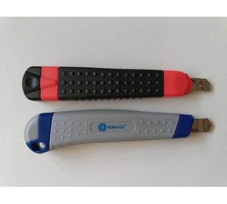 Раньше всё покупал какие-то дешёвые ножи где попало, теперь учитывая свой опыт решил вдумчиво подойти к процессу, исследовал характеристики и купил два более дорогих – Stayer Hercules 18 и Кобальт 242-120. Сравнение: Ручка выдвижения лезвий у Stayer выше и легче нащупывается пальцем, у Кобальта она более плоская и требуется заметно более высокое усилие пальцев для выдвигания/задвигания лезвия. Stayer работает более мягко и тихо, Кобальт при выдвигании громко щёлкает. Автостоп есть у обоих ножей (т.е. лезвие фиксируется автоматически сразу после перемещения). Крутилка дополнительной фиксации лезвия (очевидно нужна для резки с большим усилием и высокой аккуратностью, чтобы лезвие не шаталось, при обычном использовании ножа нет надобности зажимать эту крутилку). У Кобальта это простой болт с тонкой пластиковой ручкой (которая при падении сломается) и зажимает он просто вкручиваясь (по часовой) прямо в лезвие. У Stayer – это болт с металлической ручкой, и работает он наоборот – выкручиваясь (против часовой) зажимает распорку которая зажимает лезвие по всей ширине. У Кобальта пластиковая рукоятка болта выпирает за габариты корпуса – это дополнительный риск поломки при падении, да боковое расстояние от стены (на котором можно резать) получается выше т.к. ручка болта мешается. Но есть и плюс – у Кобальта этот болт можно вообще выкрутить совсем чтобы не мешался (и потерять заодно), а у Stayer он расклёпан и выкрутить (потерять) его невозможно. Запас лезвий в комплекте одинаковый – одно в работе и два запасных. Обламывать секцию придётся сторонними предметами, ни у одного из этих ножей в крышке запаски нет прорези для ломания секции (впрочем тут крышку лишний раз вынимать и нельзя – при снятии кассеты с запасными ножами рабочий нож вылетает). Для замены лезвия тут не предполагается открывать крышку, тут автоподача, у обоих ножей. При выдвигании лезвия до конца его фиксатор отжимается и лезвие вынимается, затем механизм цепляет следующее лезвие. У Кобальта в кассету можно вложить 3 лезвия – из которых 1 уходит в работу и в запасе 2. У Stayer толщина кассеты больше (я думал туда запихнуть 6-7 лезвий), однако оказалось что вложить можно не более 4 лезвий (не хватает высоты крючка в механизме автоподачи) – будет 1 лезвие в работе и 3 в запасе. Механизм защёлки лотка запасных лезвий у Stayer лучше – простой механизм защёлки (и он именно защёлкивается при закрывании). У Кобальта механизм неоправданно сложный, при закрывании надо нажимать кнопку иначе его можно сломать. Впрочем перезарядка кассеты – это операция не частая, так что это не важно. Качество обрезиненной часть рукоятки. У Кобальта обрезиненное покрытие – это какой-то мягкий пластик и встроен он без щелей. А у Stayer – обычная чёрная резина наклеена, она может отклеиваться и вдобавок она изначально по всему периметру имеет щель 2мм – будет забиваться грязью. А ещё у Кобальта есть отверстие чтобы повесить на гвоздик, у Stayer отверстий нет. Итог: Stayer сделан лучше, по мелочам. Stayer будет у меня на даче, а Кобальт в квартире. Кобальт это хороший именно канцелярский нож, а Stayer – строительный.