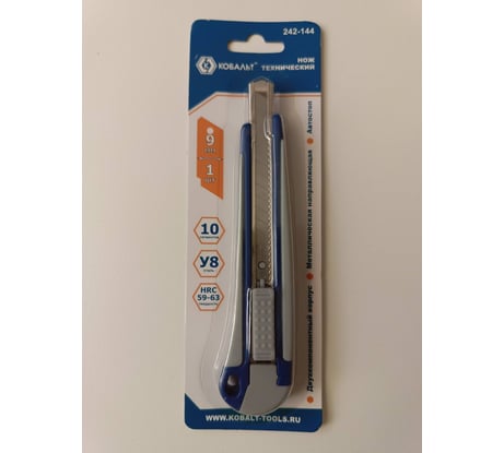 Технический нож, лезвия 18мм 3шт, двухкомпонентный корпус, металлическая направляющая, автостоп КОБАЛЬТ 242-120 широко используется при ремонтно-отделочных работах при резке обоев, линолеума, пластика, резины и пр. Изделие имеет двухкомпонентный корпус, прочную направляющую из металла, функцию автостопа и дополнительный фиксатор лезвия. Старое, затупленное лезвие легко поддается замене.
