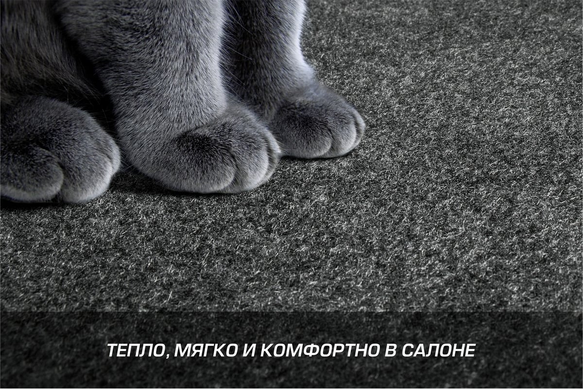 - Полиэфирное волокно в составе материала придаёт коврикам мягкость и снижает истирание подошвы обуви водителя и пассажиров